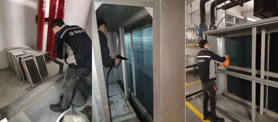 广州IFC及DG视讯金融大厦利用假期对空调设备进行了全面、彻底的清洗和消毒。包括清洗空调风柜的粗效和中效尘网、空气换热器(翅片)、集水盘等,并用斯戴乐杀菌除味剂及84消毒液进行杀菌消毒,频率为每周清洁和消毒一次。