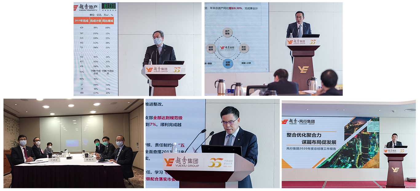 会上,地产板块、广州DG视讯金控、创兴银行、交通板块、农业食品板块的总经理分别对2019年的经营工作情况和2020年的事业计划要点进行了汇报。