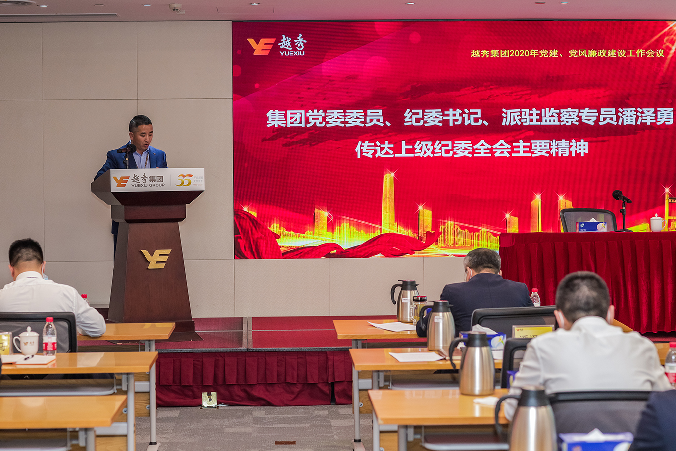 基于新冠肺炎疫情防控工作需要,本次会议采用“视频+直播”形式召开,集团领导班子成员、监事会成员及各板块党委书记、副书记、纪委书记,集团总部职能部门主要负责同志等在现场参会;各板块领导班子成员、集团总部中层以上管理人员,集团各基层党组织负责人,各板块党群、纪检监察、人力资源部门主要负责人,集团系统“两代表一委员”等通过视频方式参会,参会人数共约280人。
