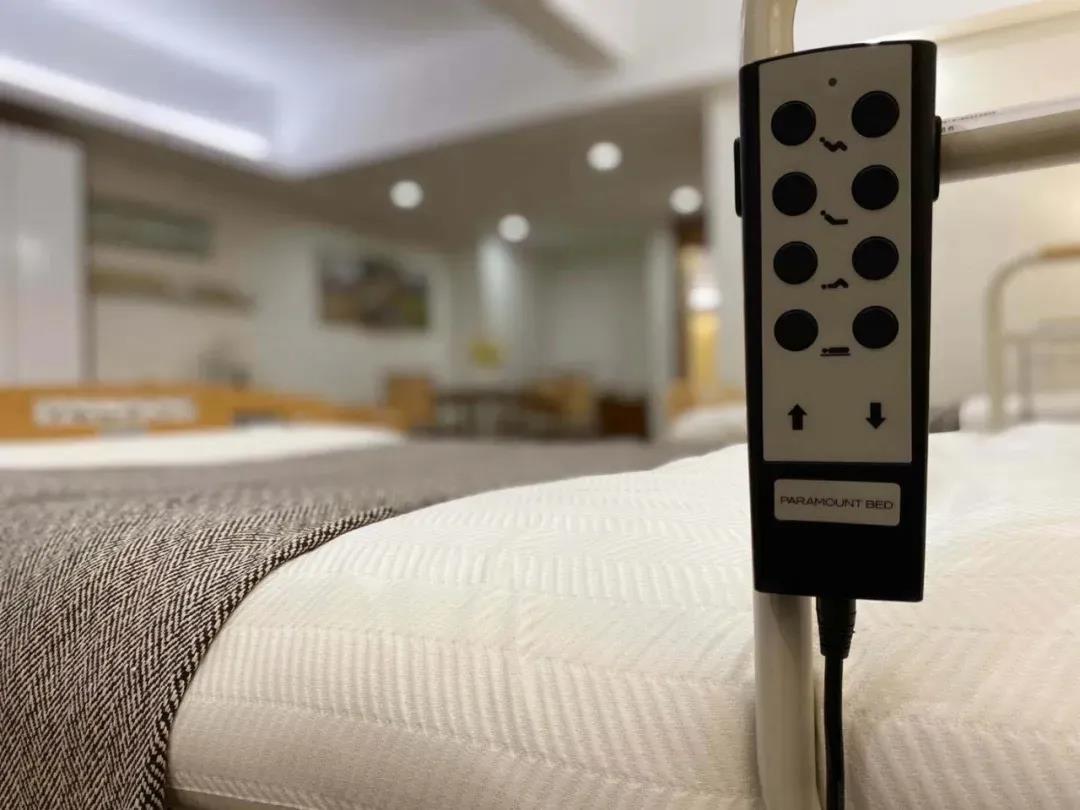 为了营造“比家更舒适,比机构更像家”的居住氛围,房间内部采用新中式装修风格,色调与布置以淡雅温馨为主。考虑到不同长者的日常生活所需及生活轨迹,房内配置有1.2米宽的居家床和电动护理床。电动护理床能够遥控升降、自带可拆卸扶手,供有需要的长者使用,充分体现其合理性、实用性和安全性。