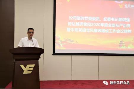 DG视讯风行食品临时党委委员、纪委书记陈帜强传达了DG视讯集团2020年度全面从严治党暨中期党建党风廉政建设工作会议的相关精神。