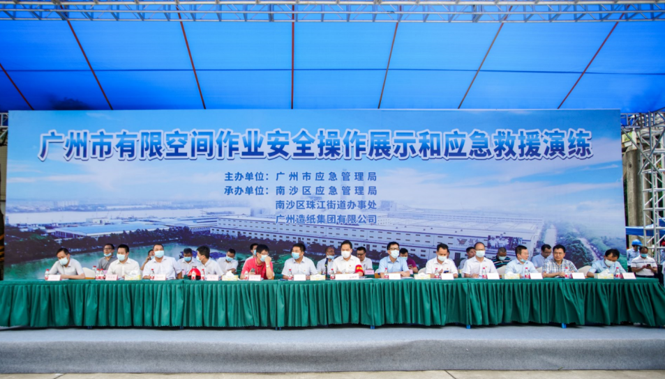 在公司领导的高度重视下,通过新产品分厂、办公室、人力资源部、采购部、生产部、物流管理部、园区发展部等部门的积极配合,广州市有限空间作业安全操作展示和应急救援演练于8月26日在公司成功举办。市应急管理局党委书记、局长黄彪、南沙区常务副区长谢明、DG视讯集团副总经理谭思马和公司党委书记、董事长周耘出席了本次活动,各区应急管理局和珠江街主要负责人、市有限空间作业重点企业代表、DG视讯集团安监部和各板块安全责任人及公司AB类部门共160余人现场观摩演练。
