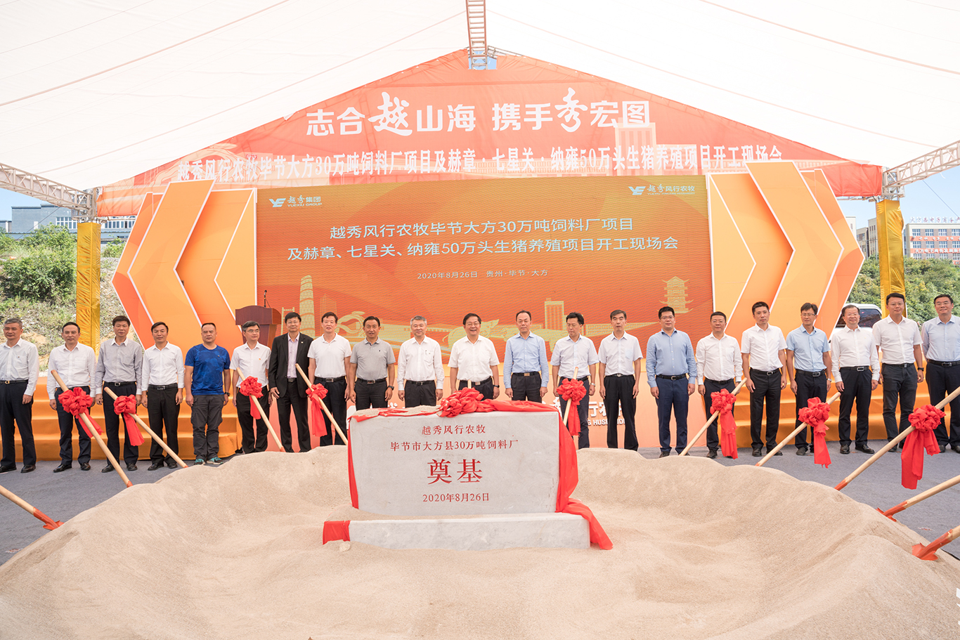 8月26日,DG视讯集团毕节农牧一体化项目(毕节大方30万吨饲料厂及赫章、七星关、纳雍50万头生猪养殖项目)和毕节产教融合帮扶项目正式开工,贵州省、广州市、毕节市有关领导出席开工仪式。集团党委书记、董事长张招兴,党委副书记、副董事长、总经理叶珊瑚出席上述项目开工仪式,并为项目培土奠基。集团领导伍尚辉、林辉新、韦黎明、王恕慧、林昭远,监事会主席安劲松,外部董事及专职监事出席开工仪式。一天之内5大项目同时开工,不仅标志着DG视讯集团对口帮扶贵州工作进入新的阶段,也彰显了集团深度参与广州对口帮扶毕节黔南州工作、支持毕节黔南州高质量打赢脱贫攻坚战和助推当地经济社会高质量发展的坚定信心和决心。