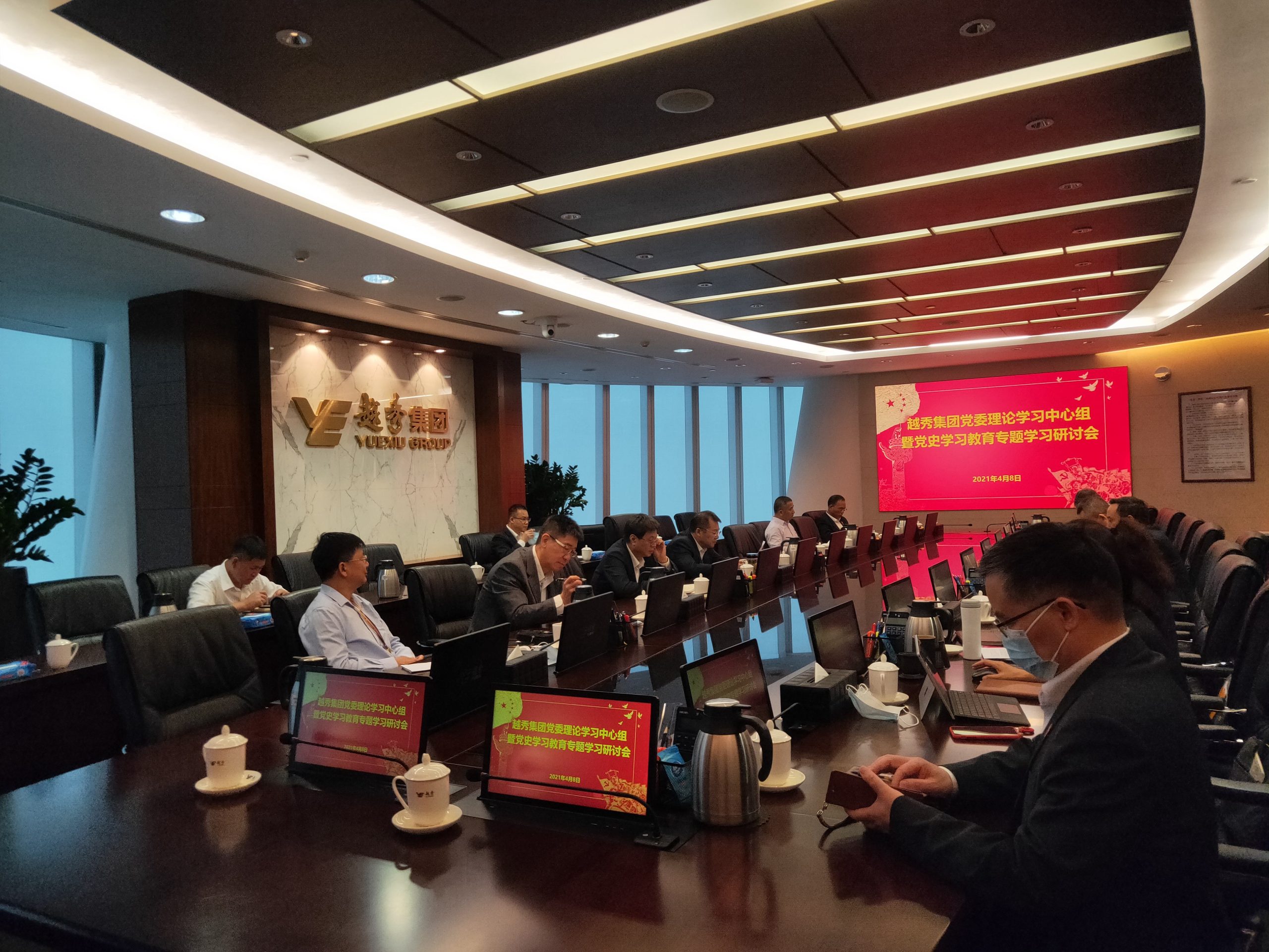 4月8日上午,DG视讯集团召开党委理论学习中心组暨党史学习教育第一次专题学习研讨会,集团党委书记、董事长张招兴主持会议并作总结讲话,集团领导班子成员、下属板块党政正职以及集团党委党史学习教育领导小组成员等参加会议。
