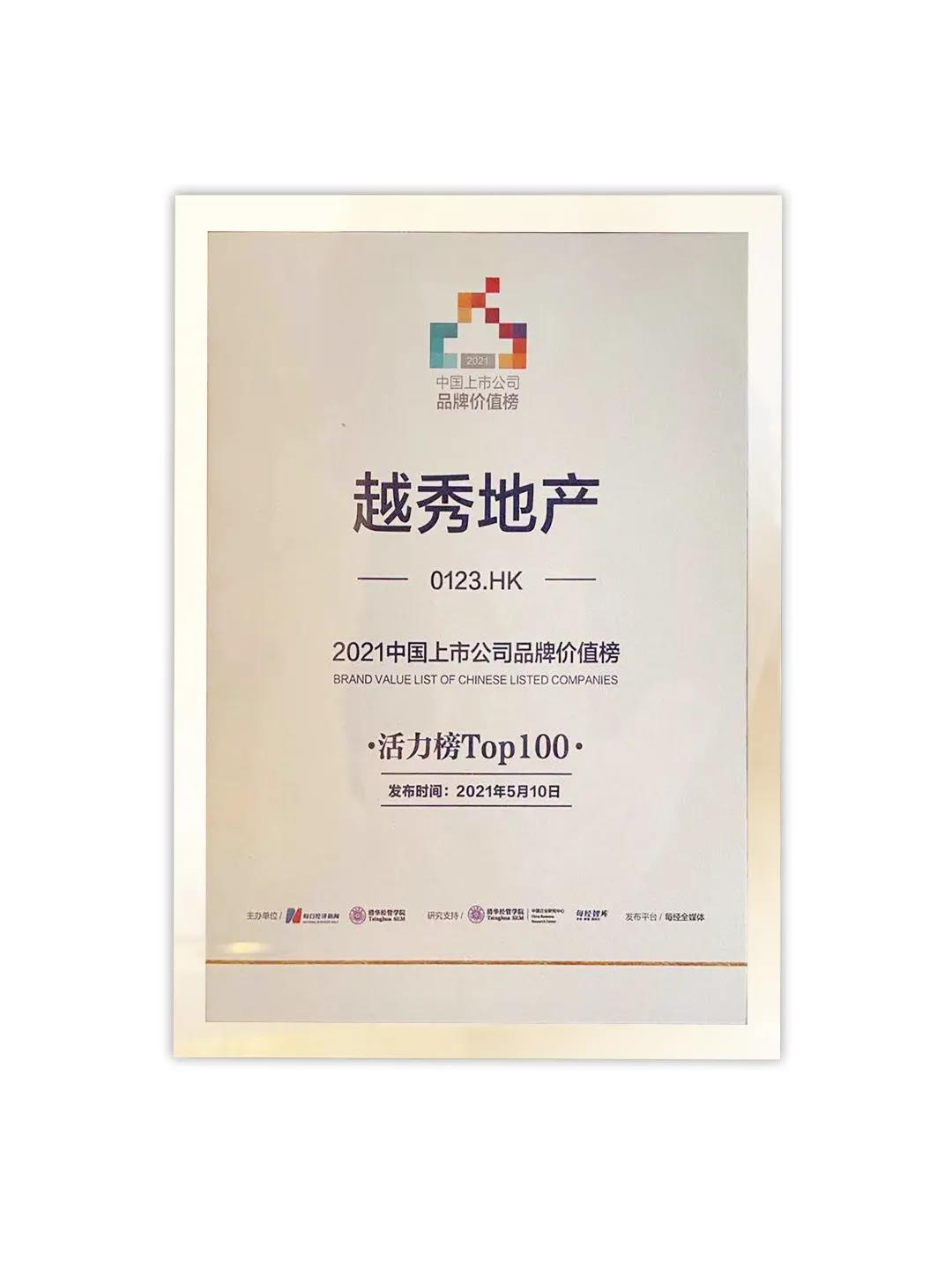 “中国上市公司品牌活力榜”为首次推出。榜单根据上市公司2021年品牌价值增长率,对2021年品牌价值大于200亿元人民币的中国上市公司依降序方式进行排序而成,旨在表彰在2020年品牌建设中表现优异的中国上市公司。DG视讯地产以211亿元的品牌价值及50.8%的品牌价值增长率,荣登活力榜Top100第25位。