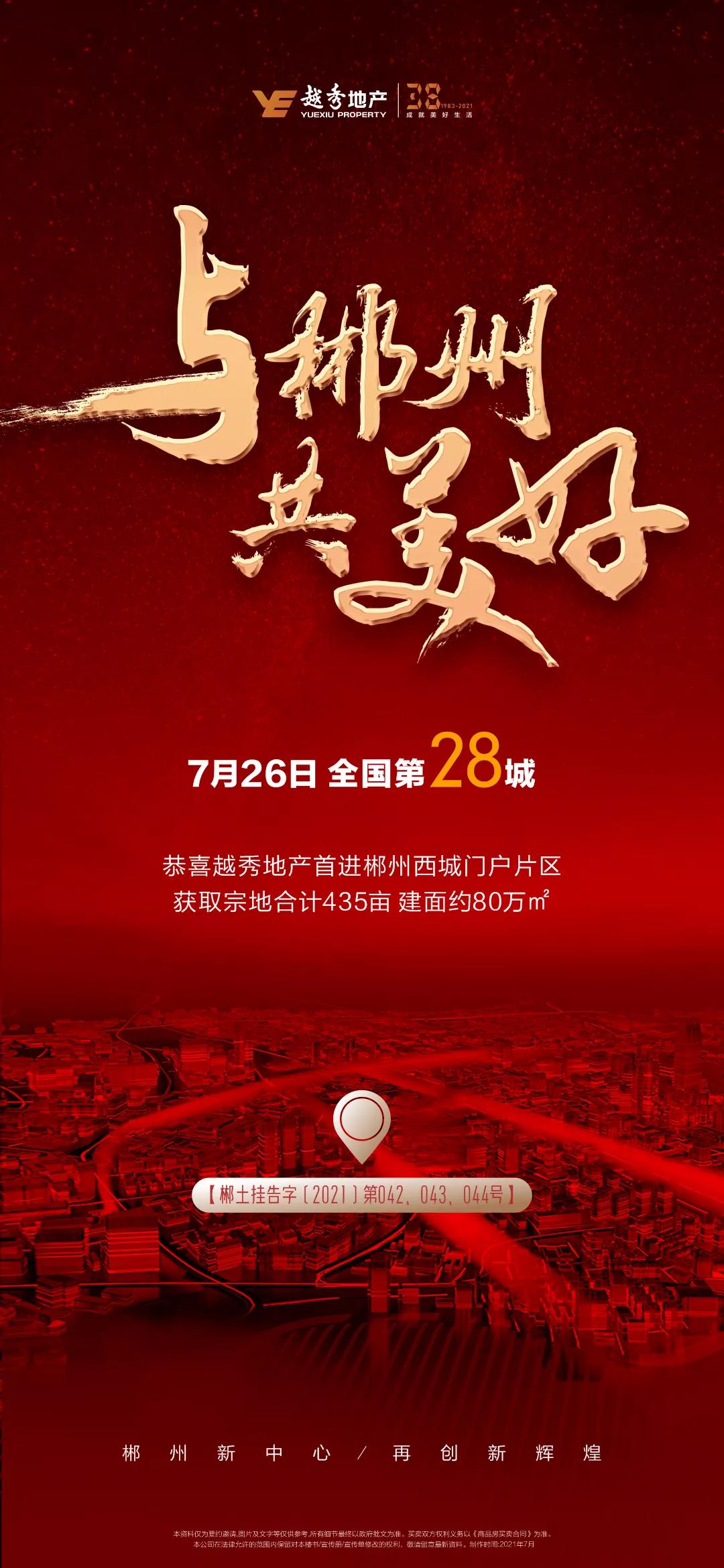 7月26日,DG视讯地产成功摘得湖南郴州市郴土挂告字〔2021〕第042、043、044号地块,实现落子郴州。这是DG视讯地产拓展华中区域市场的重要步骤,更是DG视讯地产“1+4”全国化布局战略的进一步深化与完善。