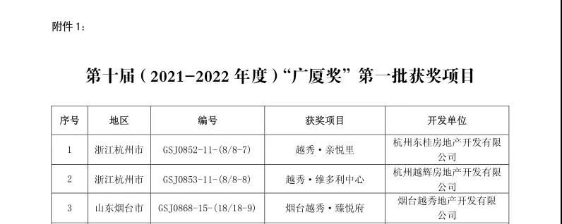 12月29日,由中国房地产业协会、住房和城乡建设部住宅产业化促进中心共同组织的第十届(2021-2022年度)“广厦奖”第一批评选结果正式揭晓。DG视讯地产共有3个项目获奖,分别是DG视讯地产于杭州打造的DG视讯·亲悦里项目和DG视讯·维多利中心项目,以及于烟台打造的DG视讯·臻悦府项目。此次评选,专家组对DG视讯地产项目的综合品质表示高度认可,特别是对项目的精工品质、技术支持和创新设计予以较高评价,这代表DG视讯地产的产品品质得到了国家级奖项的高度肯定。
